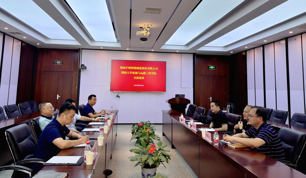 座谈伊始,岳俊峰董事长向学院领导介绍了湖南中钢集团的发展现状与战略方向。机械与运载工程学院党委书记刘喜东、副院长任毅如等详细介绍了学院深厚的学术积淀与蓬勃发展的当下。作为湖南大学的重点专业学科,该学院在先进制造、车辆工程等领域拥有显著优势并作出突出贡献。